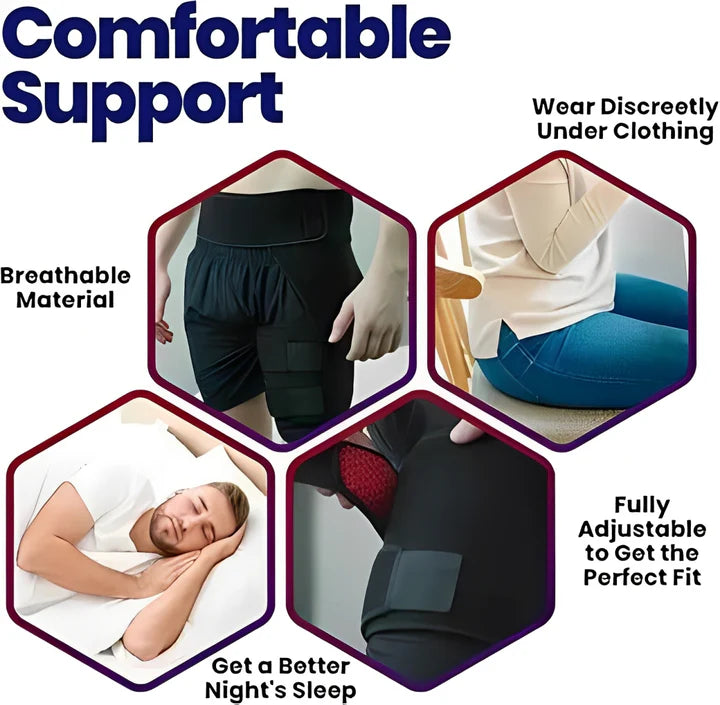 The Sciatica Relief Hip Brace is made with breathable fabric and fully adjustable straps, giving you support without restricting movement. Wear it discreetly under clothing at work, while resting at home, or even during sleep. Wherever you go, this brace moves with you, keeping you comfortable and supported all day long.